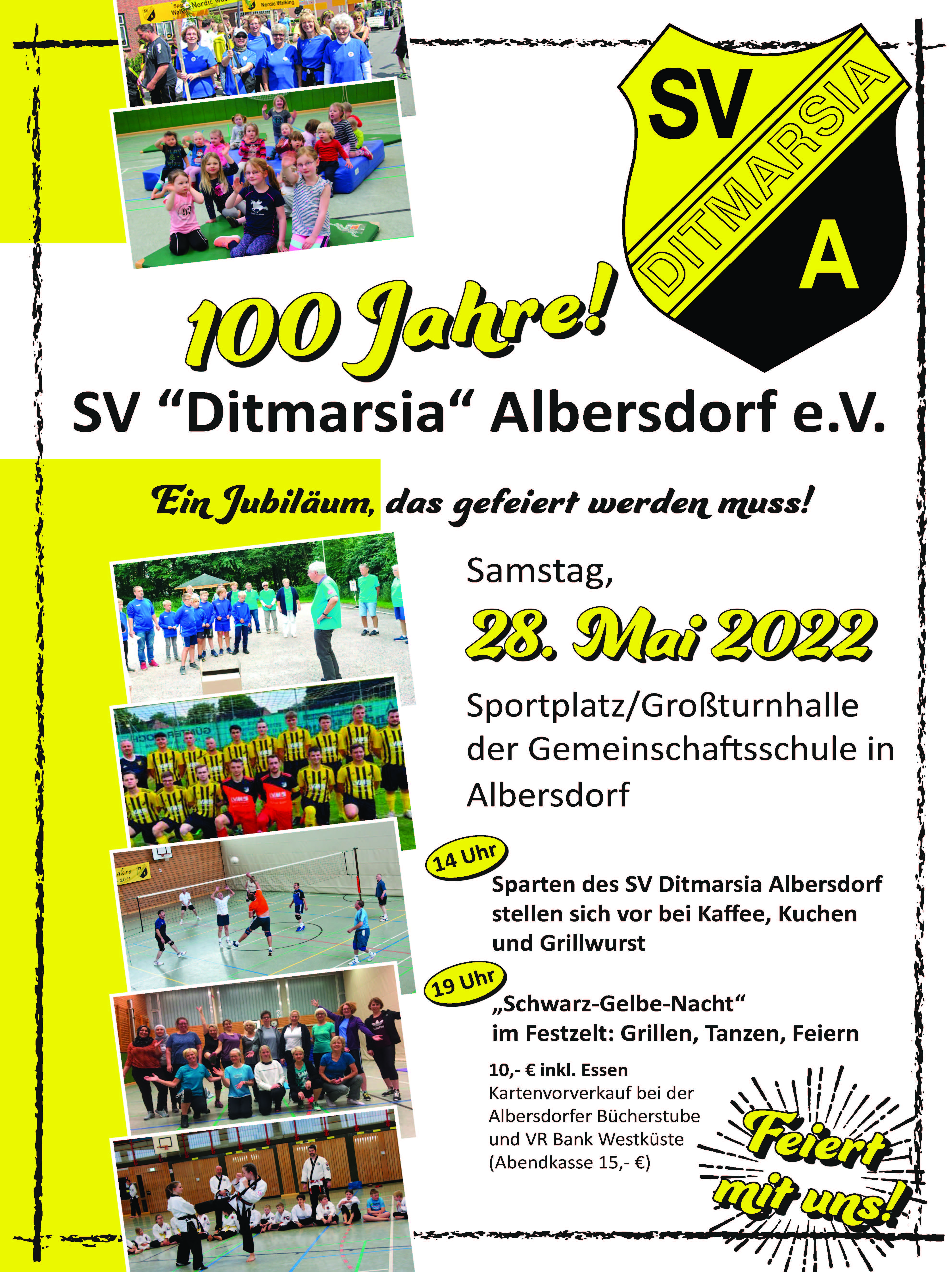 Wegen der Kontaktbeschränkungen wurde in diesem Jahr keine Jubiläumsfeier geplant. Die werden wir jedoch am 28.05.2022 in einem Zelt auf dem Sportplatz Süderstraße nachholen. Die Planungen dafür sind bereits angelaufen.