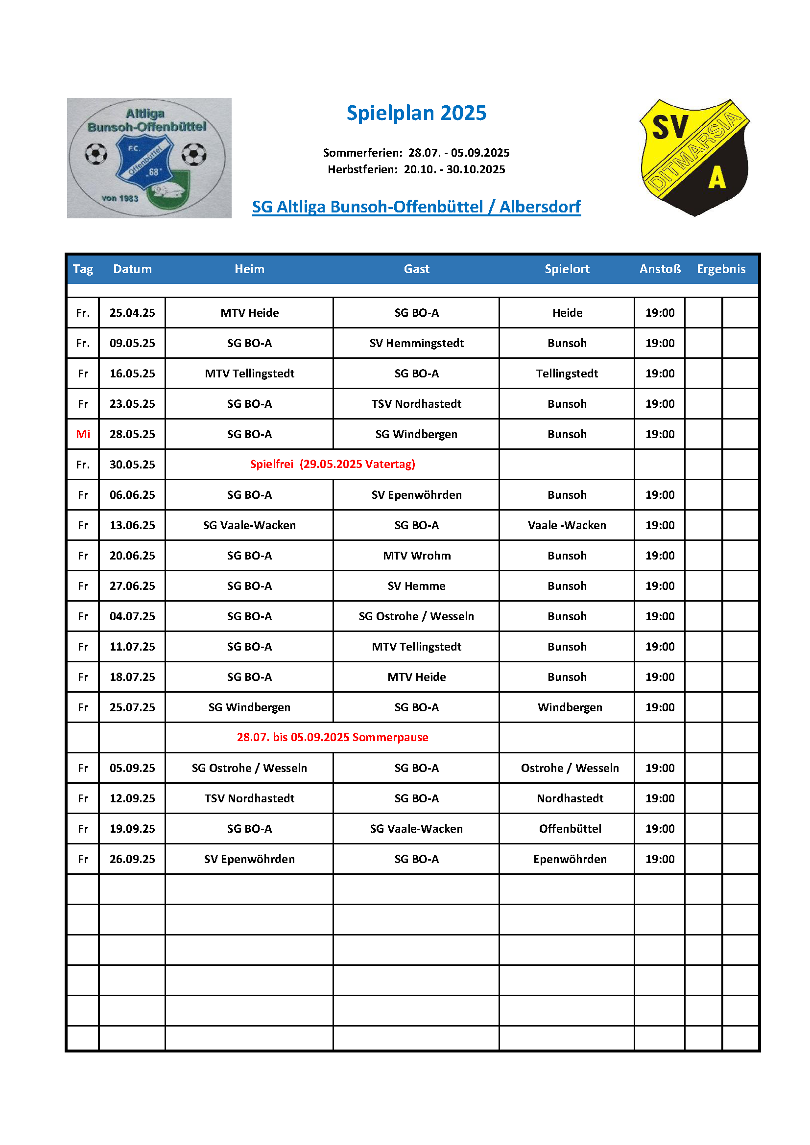 Mittwoch 19:00- 20:30 Offenbüttel/ Bunsoh